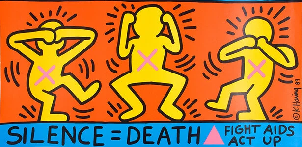 “Although he died in 1990, Keith Haring’s art activism lives on. His pop art-style makes his messages accessible. Today, there are Haring T-shirts, Haring hats, Haring shoes, Haring baseball hats and badges. During the 1980s, he made art which addressed socially important issues. His specially designed posters were given out at anti-nuclear and anti-apartheid rallies. He also campaigned for AIDS awareness, through his famous slogan Silence = Death. Haring’s art forced people to talk about AIDS”.